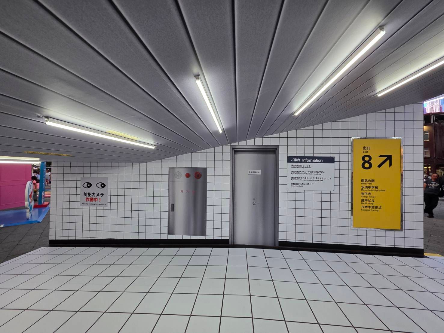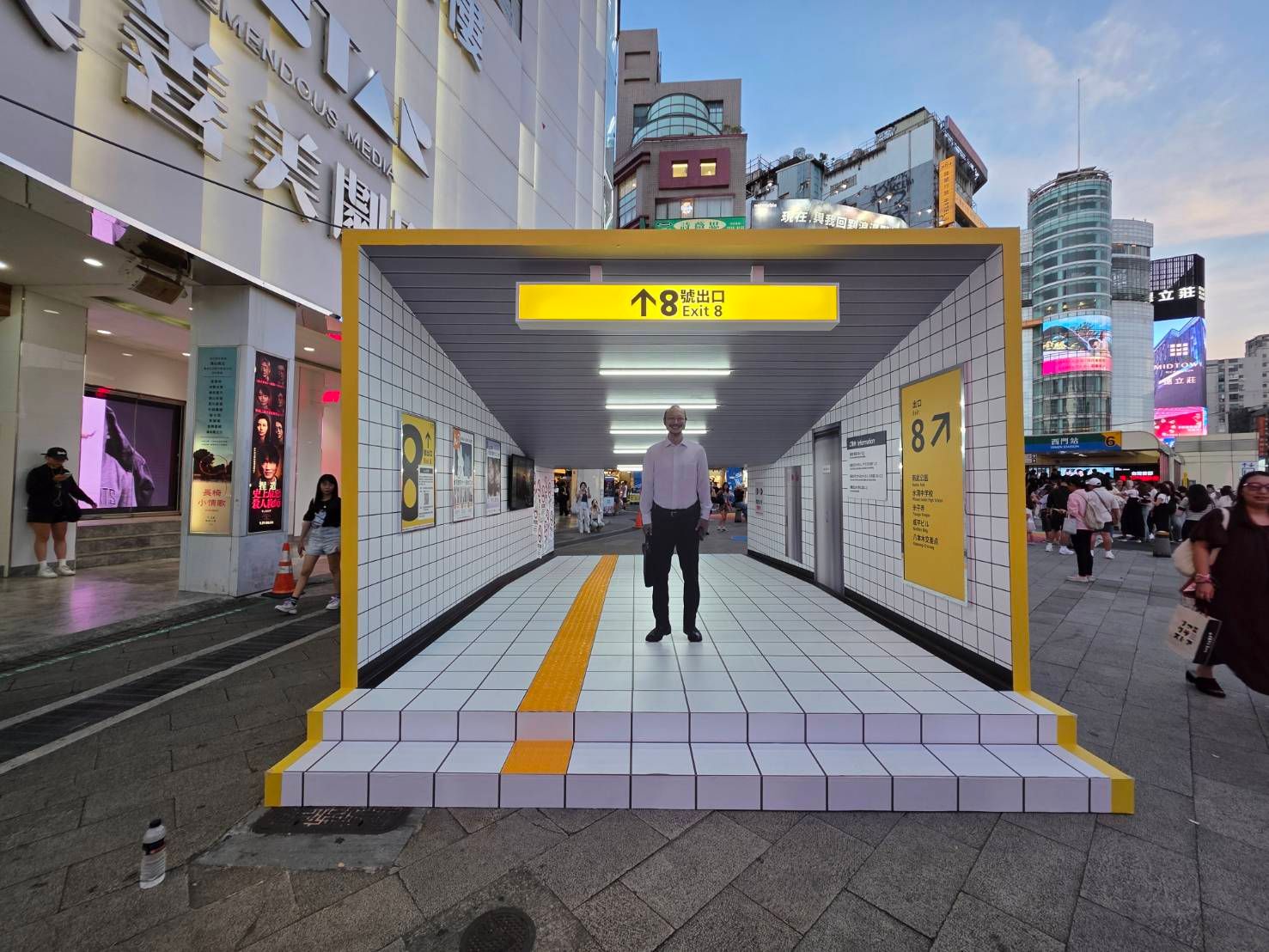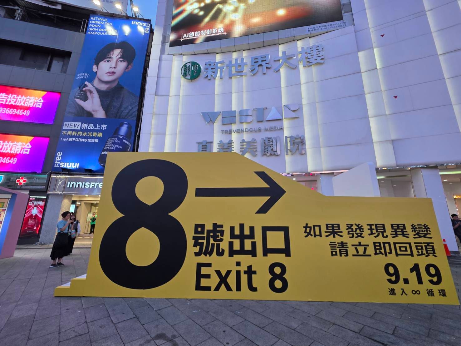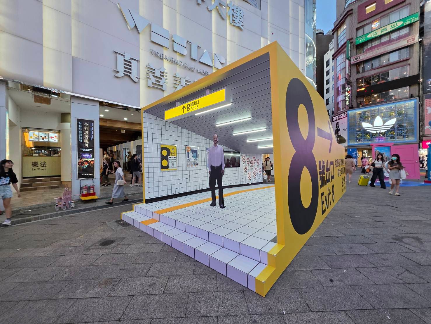 打造了真實的電影場景實體宣傳裝置,重現地下通道氛圍,並擺放了劇中經典的「微笑詭異大叔」人像,吸引民眾打卡拍照,體驗尋找「異變」的樂趣。